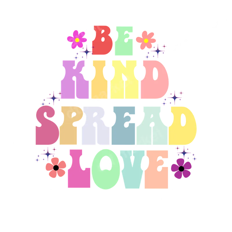 See allEmbrace a message of warmth and unity with this 'Be Kind Spread Love' DTF transfer, featuring a charming retro aesthetic. The text is rendered in a delightful, groovy font with an array of pastel and muted colors—pinks, yellows, blues, and greens—that evoke a cheerful, vintage vibe. Adorned with sweet, stylized flowers and subtle sparkling starbursts, this design exudes a peaceful, hippie-era feel, making it a perfect ready to press statement piece for any garment. This positive and uplifting design is ideal for vintage fashion lovers, peace advocates, and anyone who enjoys spreading kindness. It’s a fantastic iron on transfer for crafters looking to create unique gifts, small boutique owners stocking up on trendy apparel, or even teachers and counselors promoting a gentle message. Perfect for everyday wear, casual outings, or as a thoughtful gift for friends and family, this heat transfer design is sure to brighten anyone's day. Applying this heat press transfer is a breeze on a wide range of materials including cotton, polyester, cotton-poly blends, and even nylon. For best results, use a heat press at 300-325°F for 15 seconds with medium pressure, or a household iron with firm, even pressure. There's no tedious weeding required—simply peel and press! Create stunning custom t-shirts, cozy hoodies, stylish tote bags, unique denim jackets, or fun aprons. To maintain vibrancy, wash garments inside out and tumble dry low. Each ready to press transfer is crafted for exceptional quality, boasting vibrant, full-color printing with sharp, fine detail. The result is crack-resistant and soft to the touch, without the heavy, stiff feel of traditional vinyl. Every direct to film transfer is produced on premium DTF film with a strong adhesive backing, ensuring professional-grade results that last wear after wear.