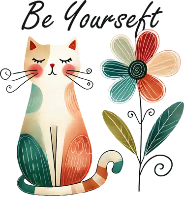 Be Yourself Watercolor Cat & Floral DTF Heat Transfer
