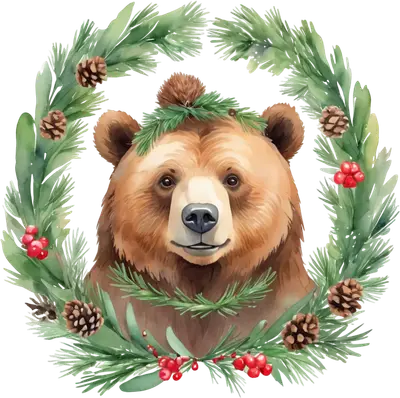 Bear Christmas Wreath DTF Transfer | Holiday Animal Ready to Press
