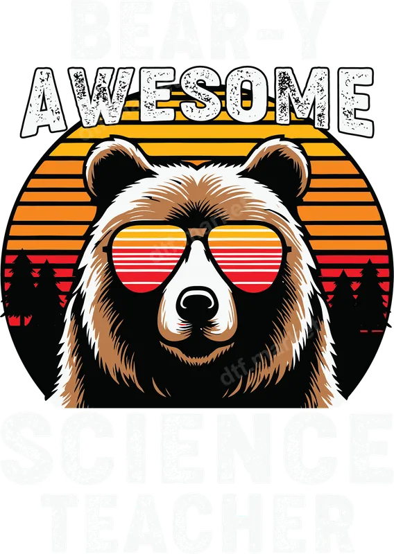 Bear-y Awesome Science Teacher DTF Transfer - Retro Sunset Design