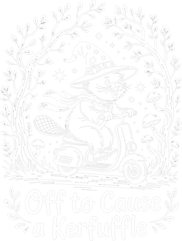 Beaver Witch Scooter DTF Transfer: Off to Cause a Kerfuffle Design