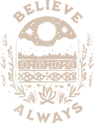 Discover a unique blend of inspiration and natural beauty with this 'Believe Always' DTF transfer. Featuring a captivating folk art style, the design showcases a celestial sun/moon over majestic mountains, intricate patterns, and a cozy campfire surrounded by rustic foliage. The distressed, single-color aesthetic adds a timeless, bohemian vibe, making this a perfect ready to press design for anyone who finds peace and motivation in the great outdoors. It’s an ideal way to express personal values and a love for nature on any garment. This versatile iron on transfer is perfect for outdoor enthusiasts, hikers, campers, spiritual seekers, and anyone who appreciates a boho-chic style. It makes a thoughtful gift for friends and family embarking on new journeys, or for small business owners looking to create unique apparel for their boutiques. Whether for a camping trip, a nature retreat, or simply as daily wear, this meaningful heat transfer design empowers and inspires. Crafters and Etsy sellers will find this a fantastic option for creating popular, trending items. Applying this heat press transfer is incredibly simple. It adheres flawlessly to cotton, polyester, cotton-poly blends, and even nylon, transforming plain items into personalized masterpieces. Use a heat press at 300-325°F for 15 seconds with medium pressure, or follow instructions for a household iron. There's no tedious weeding required—just peel the film and press! Perfect for creating custom t-shirts, hoodies, sweatshirts, tote bags, pillow covers, and denim jackets. For lasting durability, simply wash garments inside out and tumble dry on low heat. Experience professional-grade results with this ready to press transfer. It features vibrant, full-color printing (even if it's a single color, the term implies rich pigments) with crisp details and a soft, lightweight feel that won't crack or peel. Unlike heavy vinyl, our transfers integrate seamlessly with fabric. Each direct to film transfer is meticulously printed on premium DTF film, boasting a strong adhesive backing to ensure a smooth, professional finish on every application, giving your apparel a high-quality, boutique look.