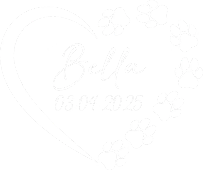See allThis elegant DTF transfer features a heartwarming design with the name "Bella" and date "03.04.2025" within a heart outline. Delicate paw prints arc around, symbolizing a cherished pet's journey. This ready to press heat transfer offers a poignant, personal tribute to memorialize a beloved animal companion with dignity. This personalized pet memorial heat press design is ideal for pet parents or grieving families celebrating a passed furry friend. It's a thoughtful way to commemorate a pet's passing, birthday, or adoption, transforming apparel into a cherished keepsake. A comforting gift for pet loss, allowing memories to be worn close to the heart daily. Our direct to film transfers ensure effortless application on cotton, polyester, and blends. Use a heat press at 300-325°F for 15 seconds with medium pressure, then cold peel for best results. This iron on decal can also be applied with a household iron, making personalization accessible. No weeding or layering is required; just press and wear! You'll love the exceptional quality of our apparel transfers. Printed with vibrant, long-lasting colors, they resist cracking and fading, ensuring your memorial remains beautiful for years. The transfers offer a soft, lightweight feel, integrating seamlessly with your garment. Crafted on professional-grade DTF film with strong adhesive, they provide superior durability and a high-quality finish.