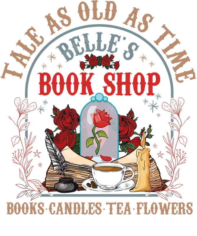 See allThis enchanting DTF transfer brings to life the magic of a classic fairytale, featuring "Belle's Book Shop" and the iconic "Tale As Old As Time" phrase. The design beautifully combines an enchanted rose under a bell jar, vintage books, a graceful quill, a cozy teacup, and a lit candle, framed by elegant floral accents. It’s a whimsical, sophisticated ready to press design capturing the essence of literature and timeless romance, perfect for adding magic to any garment. This delightful heat press design is ideal for avid readers, fairytale enthusiasts, Disney fans, and anyone cherishing Belle's story. It makes a wonderful gift for librarians, teachers, book club members, or as a thoughtful present for birthdays, holidays, or to show appreciation for a fellow bookworm. Create custom t-shirts for a themed party, unique tote bags for library visits, or cozy sweatshirts for relaxing with a good book. Applying this versatile heat transfer is incredibly easy. Our high-quality iron on transfer adheres perfectly to a wide range of fabrics, including cotton, polyester, and blends, ensuring professional results every time. For best application, use a heat press at 300-325°F for 15 seconds with medium pressure, then peel cold. No weeding or layering is required, making your crafting process smooth and enjoyable. Experience superior quality with our professional-grade DTF transfer. Printed with vibrant, durable inks on premium direct to film transfer material, this design boasts exceptional color clarity and crisp detail that truly stands out. It's crack-resistant, peel-resistant, and incredibly soft to the touch, ensuring comfort and longevity on your chosen apparel. Our strong adhesive backing ensures a lasting bond, so your custom shirt design will endure countless washes and wears.