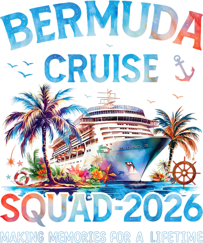 See allThis vibrant DTF transfer celebrates the "Bermuda Cruise Squad 2026" with a beautiful tropical scene. It features a majestic cruise ship amidst swaying palm trees and colorful hibiscus, alongside an anchor and ship's wheel. The watercolor-style text is complemented by "Making Memories for a Lifetime," perfect for commemorating an unforgettable group vacation. This ready to press design brings your trip to life. This tropical apparel transfer is ideal for cruise groups, family vacations, or friends' trips heading to Bermuda in 2026. Create matching t-shirts, hoodies, or tote bags for your squad to wear onboard or during shore excursions. It's a fantastic keepsake and builds excitement. These unique iron on transfers make thoughtful gifts for travel companions, fostering unity. Applying this heat press transfer is incredibly easy for all skill levels. Our high-quality direct to film transfer works beautifully on cotton, polyester, and blends. For optimal results, use a heat press at 300-325°F for 15 seconds with medium pressure. It can also be applied with a household iron, following simple instructions. Enjoy a heat press ready design with no weeding, cutting, or layering, making your custom apparel project quick and fun. Experience superior quality with our professional-grade DTF transfers. These shirt designs feature incredibly vibrant colors that stand out on any garment. Designed for durability, they are crack-resistant, peel-resistant, and built to withstand numerous washes. The finished print offers a soft, flexible feel for maximum comfort. Our premium DTF film and strong adhesive guarantee a long-lasting, professional finish, turning any blank garment into a cherished memento.