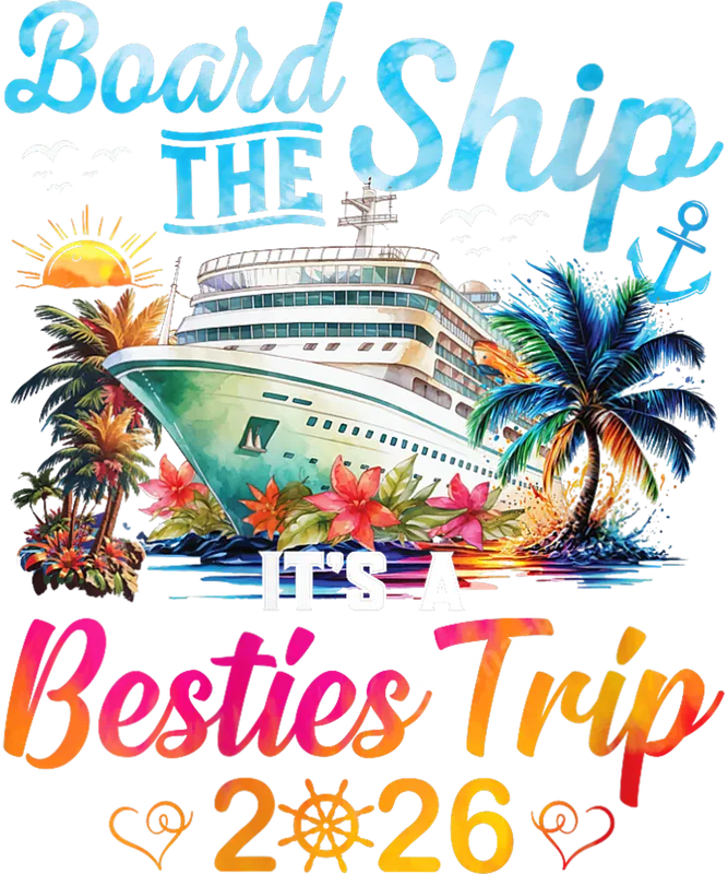 See allEmbark on an unforgettable adventure with this delightful Besties Trip 2026 DTF transfer, featuring a stunning cruise ship sailing amidst a tropical paradise. Adorned with lush palm trees, vibrant hibiscus flowers, and a radiant sunset, this design encapsulates the joy and excitement of a friendship voyage. The playful phrase "Board THE Ship IT'S A Besties Trip 2026" is rendered in eye-catching, gradient colors, making this a truly ready to press statement piece for your next group getaway. This eye-catching t-shirt transfer is perfect for groups of best friends planning their next big cruise vacation or tropical escape in 2026. Imagine matching outfits for your entire squad, creating memorable photos and a cohesive look for your girls' weekend, birthday cruise, or any celebratory travel event. It also makes a fantastic, thoughtful gift for your fellow travel companions as you prepare for your grand adventure. Applying this vibrant iron on transfer is incredibly simple, suitable for a wide range of fabrics including cotton, polyester, and their blends. For best results, use a heat press at 300-325°F for 15 seconds with medium pressure, then peel cold. You can even use a household iron, following included instructions for easy application. Best of all, there's no tedious weeding required, so you can transform your garments quickly and effortlessly. Experience premium quality with this professional heat press design. Our DTF transfers boast vivid, long-lasting colors that resist cracking and peeling, even after multiple washes. The soft-touch finish integrates seamlessly with the fabric, ensuring a comfortable wear. Each apparel transfer is crafted from high-grade DTF film with a strong, durable adhesive, guaranteeing a professional and vibrant result every time.
