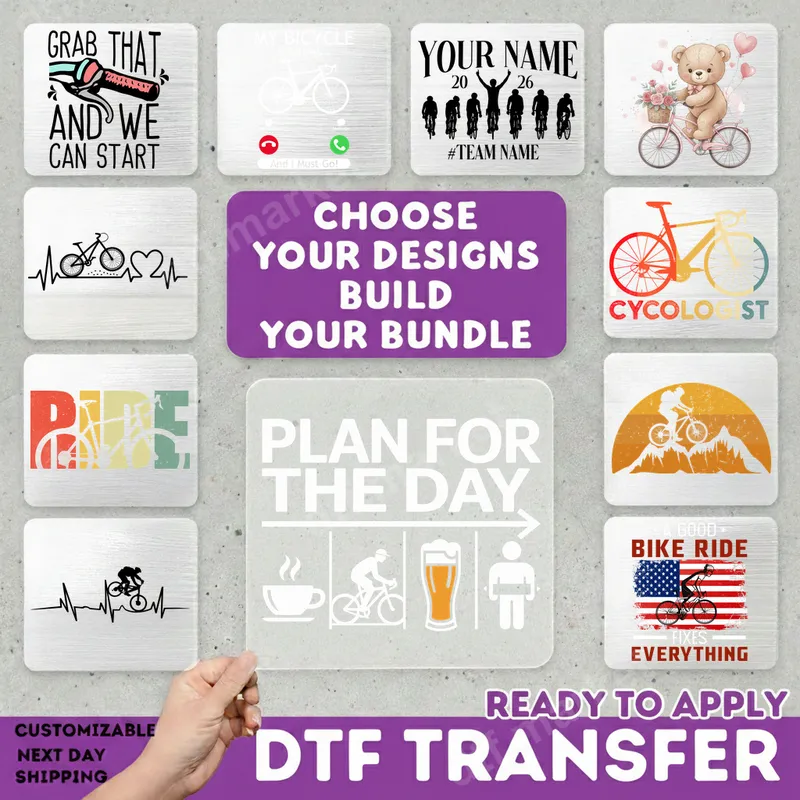 Bicycle Cycling DTF Transfers | Ready to Press Bike Designs Bundle