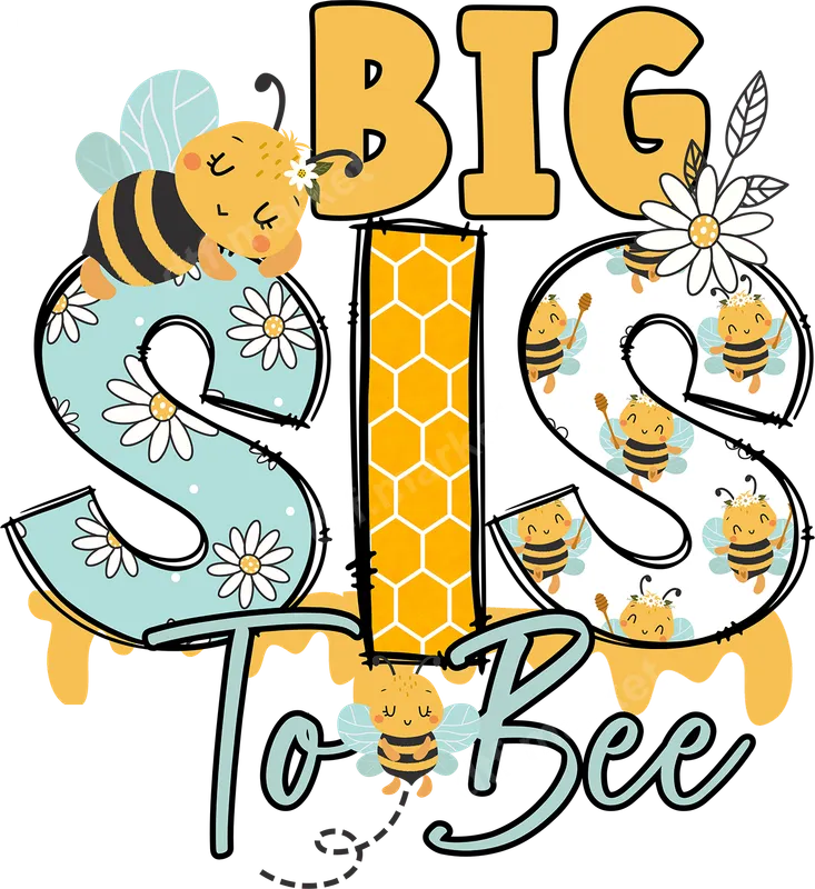 See allThis delightful "BIG SIS To Bee" DTF transfer features an enchanting design perfect for celebrating an upcoming new arrival. Adorned with charming sleepy and buzzing bees, cheerful daisies, golden honeycomb, and sweet honey drips, this ready to press transfer exudes warmth and anticipation. It's a whimsical way to announce the exciting new role of an older sister, bringing a touch of adorable buzz to any garment. This charming heat transfer is ideal for expecting parents looking to involve their older child in a baby announcement or gender reveal. It makes a wonderful gift from grandparents, aunts, or uncles for a soon-to-be big sister. Perfect for baby showers, family photo shoots, or simply everyday wear to showcase her special status. This design is also great for photographers preparing for sibling announcement sessions. Applying this vibrant direct to film transfer is effortless. It's designed for use with a heat press at 300-325°F for 15 seconds with medium pressure, but can also be applied with a household iron (firm, even pressure). Our high-quality iron on decal works beautifully on a wide range of fabrics including cotton, polyester, and most blends. There's absolutely no weeding required, making your customization project quick and easy. Crafted with professional-grade DTF film, this t-shirt transfer ensures stunning, vibrant colors that resist cracking and fading, maintaining their charm wash after wash. The design boasts a soft, lightweight feel on the fabric, providing ultimate comfort. Each apparel transfer is made with strong adhesive, guaranteeing a durable and long-lasting finish for your custom creations.
