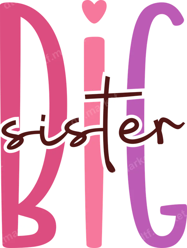 See allShowcase sibling love with this charming "Big Sister" DTF transfer. The design features the word "BIG" in playful, bold block letters, with the 'I' creatively topped by a sweet pink heart, all in vibrant pink and purple tones. Overlaid is the word "Sister" in an elegant, flowing dark brown script, adding a touch of sophistication. This high-quality DTF transfer is ready to press onto your chosen garment, making DIY custom apparel effortless and fun. This delightful heat transfer is perfect for welcoming a new baby, celebrating an older sibling's new role, or simply honoring the special bond of sisterhood. It makes a thoughtful gift for baby showers, gender reveal parties, birthdays, or as a proud announcement. Ideal for parents, grandparents, aunts, and uncles looking to create personalized items for the special big sister in their life. Applying this apparel transfer is simple and efficient. It works beautifully on a variety of fabric types, including cotton, polyester, and their blends. For best results, use a heat press at 300-325°F for 15 seconds with medium pressure. It can also be applied with a household iron, following included instructions. No weeding or complicated layering is required, saving you time and effort. Our professional-grade DTF transfers deliver exceptional quality. Enjoy vibrant colors, excellent wash durability, and a soft-to-the-touch feel that won't crack or peel. Each iron on transfer is printed on premium film with strong adhesive properties, ensuring a long-lasting and professional finish for all your custom shirt design projects.