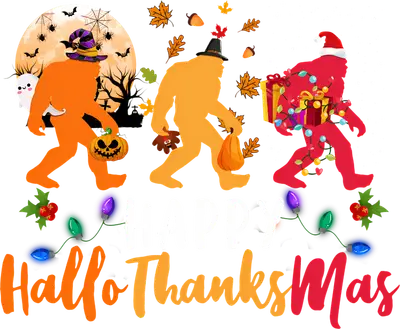 Bigfoot HalloThanksMas DTF Transfer | Funny Holiday Sasquatch Design