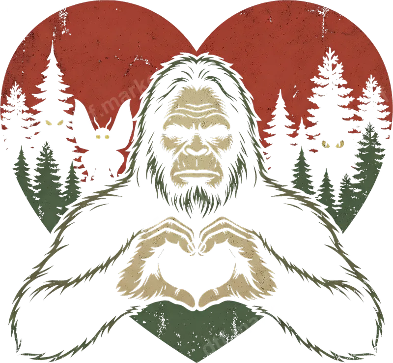 Bigfoot Heart Hands DTF Transfer | Cryptid Forest Love Design