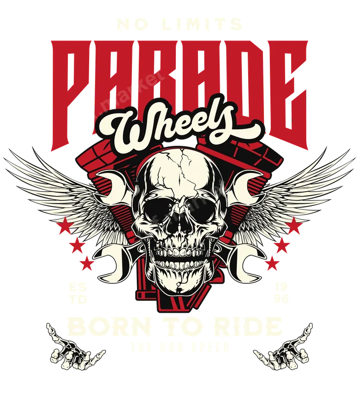 See allThe "Born to Ride, No Limits" Biker Skull Wings DTF transfer captures the ultimate spirit of the open road with its striking vintage-inspired design. Featuring a detailed, cracked skull flanked by powerful wings and crossed wrenches, this ready to press transfer embodies raw mechanical energy and freedom. Bold "PARADE Wheels" lettering and "ESTD 1996" accents complete the classic, rebellious look, making it a perfect statement piece for any apparel. This rugged iron on design is ideal for motorcycle clubs, riders, mechanics, vintage automotive enthusiasts, and anyone who lives life with no limits. It makes an excellent gift for birthdays, Father's Day, or simply to celebrate the passion for bikes and the road. Perfect for customizing gear for rallies, bike weeks, or adding an edgy touch to everyday wear, this heat press transfer speaks to the rebel heart. Our direct to film transfers are incredibly versatile, working seamlessly on cotton, polyester, and various fabric blends. Applying this t-shirt transfer is simple and efficient with a heat press: set to 300-325°F, apply medium pressure for just 15 seconds. For household iron users, ensure even, firm pressure. No tedious weeding is required, making customization quick and professional. Experience superior quality with our vibrant, crack-resistant DTF transfers. Each heat press design is crafted from professional-grade DTF film, ensuring incredible detail, a soft touch, and long-lasting durability through countless washes. The strong adhesive guarantees a secure bond, providing a finish that rivals direct-to-garment printing.