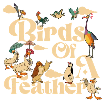 See allGather your flock with this charming "Birds Of A Feather" whimsical cartoon DTF transfer! This delightful design features a lively collection of diverse, classic animated birds, including elegant ducks with parasols, a wise owl, a cheerful penguin, a vibrant toucan, and more, all encircling the stylishly retro phrase "Birds Of A Feather." It’s a fun, heartwarming graphic that's a perfect direct to film transfer for showcasing unity, friendship, or family bonds, and it comes ready to press right out of the package. This versatile design is perfect for bird enthusiasts, nature lovers, or anyone who appreciates a touch of vintage cartoon charm. It makes an excellent iron on transfer for creating matching shirts for family reunions, group outings, or best friend apparel. Small business owners and crafters can easily add this heat transfer design to their inventory for custom orders or unique gift items, ideal for birthdays, appreciation gifts, or just because. Express your collective spirit with this endearing avian art. Applying this heat press transfer is incredibly simple, making it suitable for both experienced makers and beginners. It adheres beautifully to a wide range of materials including cotton, polyester, cotton-poly blends, and even nylon, transforming custom t-shirts, hoodies, sweatshirts, tote bags, pillow covers, and baby onesies into personalized masterpieces. Use a heat press at 300-325°F for 15 seconds with medium pressure, or apply with a household iron. Once applied, simply wash inside out and tumble dry low to ensure lasting vibrancy and durability. Experience professional-grade results with this ready to press transfer. Each piece boasts vibrant, full-color printing with exceptional detail, ensuring every feather and facial expression pops. Unlike traditional vinyl, this direct to film transfer is crack-resistant, soft to the touch, and lightweight, providing a comfortable, high-quality finish without a heavy, stiff feel. Printed on premium DTF film with a robust adhesive backing, it guarantees a smooth application and a durable, long-lasting design for all your apparel and accessory projects.
