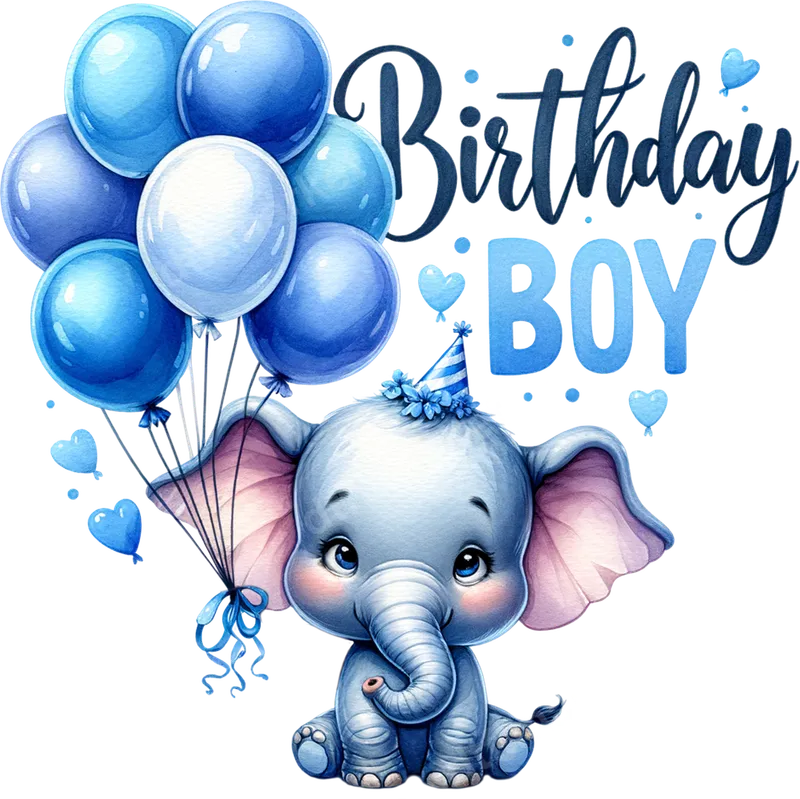 Birthday BOY Cute Baby Elephant Blue Balloons DTF Transfer