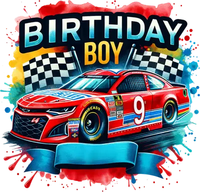 Birthday Boy Race Car DTF Transfer with Checkered Flags | Racing Design