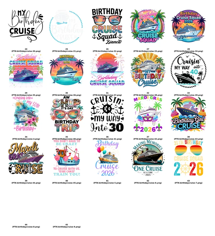 See allCelebrate your special occasion at sea with our vibrant "BIRTHDAY CRUISE SQUAD" DTF transfer. This eye-catching design features stylish sunglasses reflecting a tropical sunset, complete with a majestic cruise ship and swaying palm trees. It's a high-quality, ready to press design that perfectly captures the fun and excitement of a group birthday voyage, making it an ideal heat press ready addition to any celebratory apparel. This festive design is perfect for groups embarking on a birthday cruise, whether for a milestone birthday, a family reunion at sea, or a bachelorette party. It's a fantastic choice for creating matching shirts, hats, or tote bags for the entire squad. Ideal for pre-cruise celebrations, on-board events, or as a memorable gift for anyone planning a tropical getaway. Make your birthday trip unforgettable with custom gear. Applying this heat transfer is effortless and suitable for both beginners and seasoned crafters. Our professional-grade iron on transfer works flawlessly on cotton, polyester, and various blends. For best results, use a heat press at 300-325°F for 15 seconds with medium pressure, followed by a cold peel. A household iron can also be used. This heat press design requires no weeding, unlike traditional vinyl transfer, ensuring quick application. Experience the superior quality of our direct to film transfers. Each apparel transfer boasts incredibly vibrant colors, crisp detail, and a soft, flexible feel that resists cracking and fading, even after many washes. Crafted using premium DTF film and strong adhesive, these transfers ensure a long-lasting, professional finish on all your garments and accessories. Elevate your custom creations with transfers that stand the test of time.