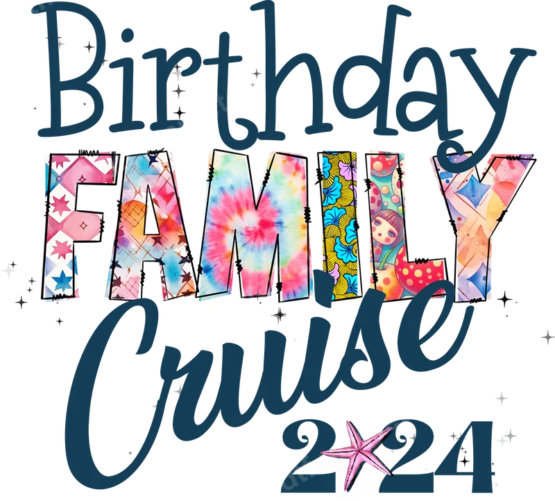 See allThis vibrant "Birthday Family Cruise 2024" DTF transfer showcases playful typography and eclectic patterns, celebrating a special family milestone at sea. The prominent "Birthday" and elegant "Cruise" text beautifully complement the colorful "FAMILY" lettering, each character filled with unique tie-dye, geometric, and artistic details. A charming pink starfish replaces the '0' in 2024, adding a perfect nautical touch. This ready to press transfer captures the joyful spirit of an unforgettable family vacation. Ideal for families planning a birthday cruise or group vacation in 2024, this heat press design unifies your celebration. It’s a perfect gift for parents, grandparents, or children, letting everyone wear their excitement. Design matching t-shirts, tank tops, or tote bags to commemorate the journey and create lasting memories for your entire group. Applying this apparel transfer is simple, yielding professional results on cotton, polyester, and blends. Use a heat press at 300-325°F for 15 seconds with medium pressure, then cold peel. While a heat press is recommended, a household iron can also be used. This iron on decal requires no weeding or complex layering, saving valuable time. Experience exceptional quality with our direct to film transfers. Each custom transfer delivers vibrant colors, crisp details, and excellent wash durability, resisting cracking or fading. Our professional DTF film offers a soft touch on garments, unlike many vinyl transfers. These heat press ready designs, with strong adhesive, will make your personalized apparel a cherished keepsake.