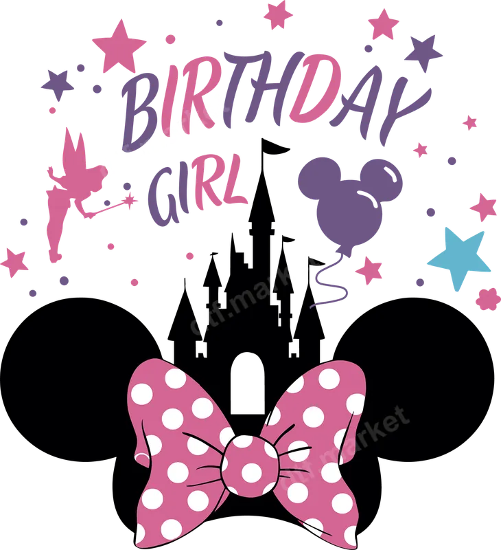Birthday Girl Fairy Castle Minnie Ears DTF Transfer