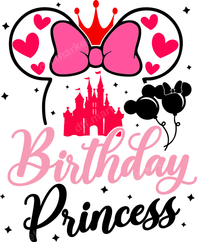 Birthday Princess Minnie Ears Castle DTF Transfer