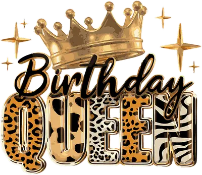 Birthday Queen Gold Crown Animal Print DTF Transfer