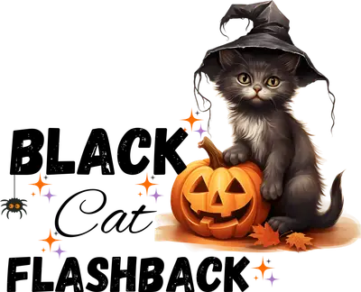 Black Cat Flashback Witch Kitten Pumpkin DTF Transfer Halloween Iron On