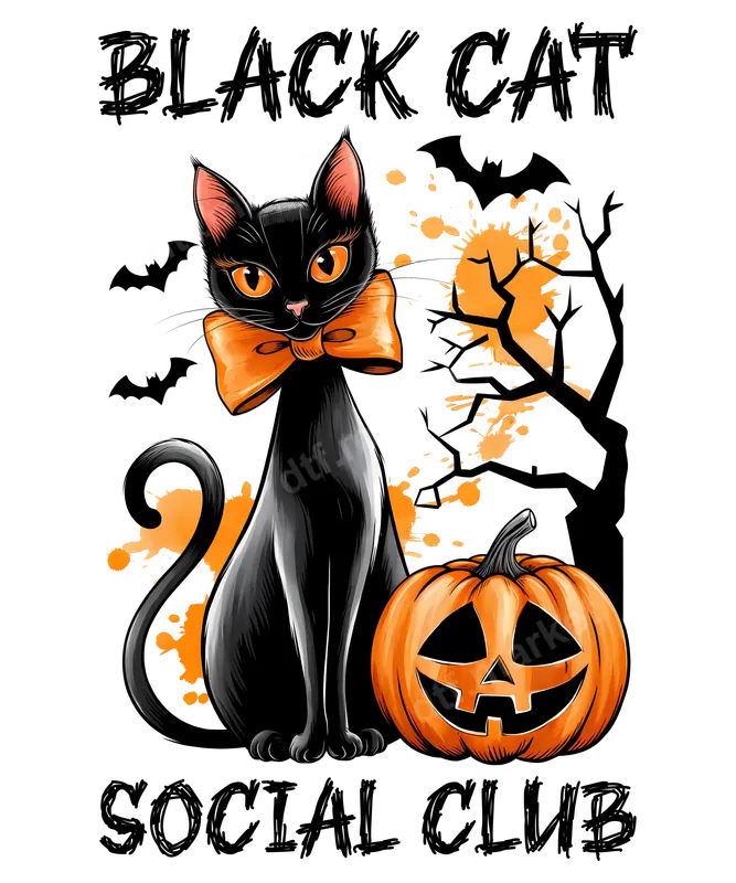 Black Cat Social Club Halloween DTF Transfer | Ready to Press Spooky Cat & Pumpkin