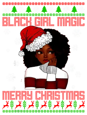 Black Girl Magic Merry Christmas DTF Transfer | Ugly Sweater Style