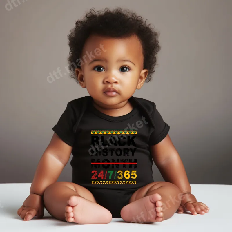 See allThis powerful DTF transfer proudly declares "BLACK HISTORY MONTH 24/7/365" in a distressed, bold font, making a year-round statement. Flanked by vibrant Pan-African inspired geometric borders, this design emphasizes continuous recognition and celebration of Black history beyond a single month. It's a ready to press transfer that beautifully captures enduring heritage and pride, ensuring your message is seen. This powerful design is perfect for advocates of social justice, educators, students, and anyone who believes in honoring Black culture and contributions daily. Ideal for Black History Month events, cultural festivals, community gatherings, or as an everyday expression of pride and awareness. It makes a thoughtful and impactful gift for family, friends, and activists who carry this important message all year long. Our direct to film transfers are incredibly versatile, adhering flawlessly to cotton, polyester, and various blends. Applying your heat transfer is simple with a professional heat press: set to 300-325°F, apply medium pressure for 15 seconds, then peel cold. For smaller projects, a household iron can also be used. Enjoy hassle-free application with no weeding or intricate layering required – just press and wear! Experience superior quality with our premium DTF transfers. Each iron on design delivers exceptionally vibrant colors and crisp details. Our professional-grade DTF film ensures excellent durability, resisting cracks and peeling even after numerous washes. The result is a soft-to-touch finish that feels comfortable against the skin, providing a professional and long-lasting apparel transfer for all your customization needs.