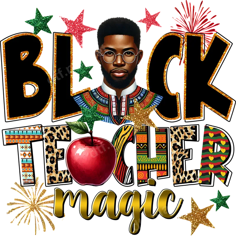Black Teacher Magic DTF Transfer | African Heritage Educator Design