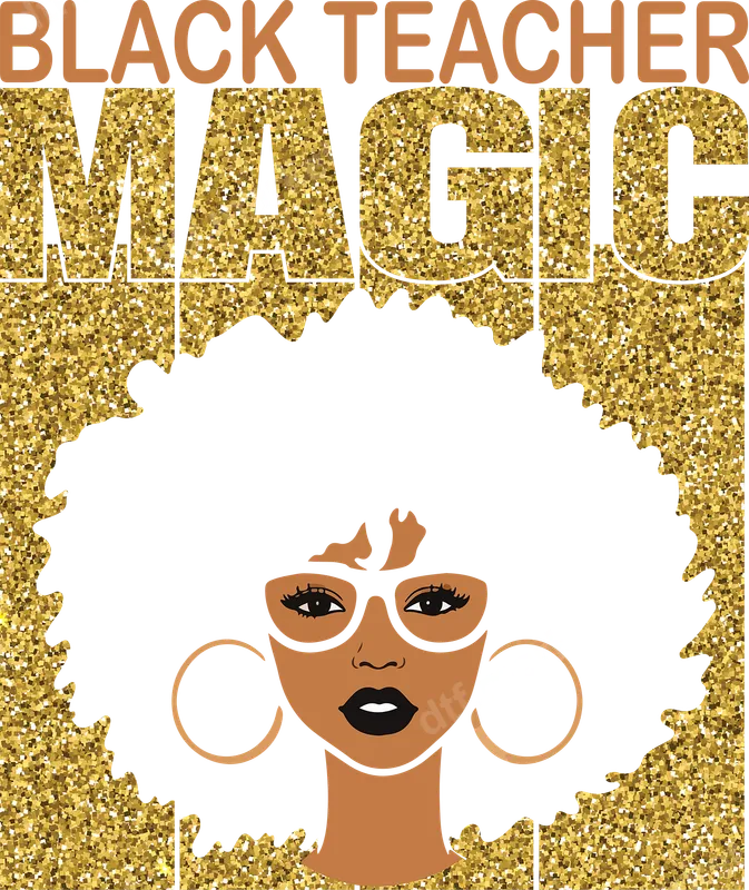 Black Teacher Magic Gold Glitter Afro Woman DTF Transfer