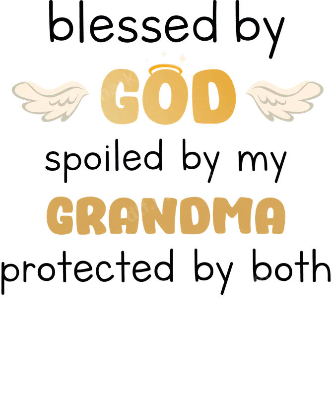 See allThis uplifting DTF transfer proudly declares "blessed by GOD, spoiled by my GRANDMA, protected by both," featuring angelic wings and a halo. "GOD" and "GRANDMA" pop in warm gold-orange, emphasizing cherished protectors and sources of love. This heartwarming design is a perfect ready to press graphic, combining faith, family, and a special grandmother bond. This inspirational apparel transfer is ideal for anyone who feels profoundly loved by both their faith and their grandmother. It makes a wonderful gift for grandchildren, celebrating their unique connection, or for grandmas themselves who want to show off their blessings. Perfect for Mother's Day, Grandparent's Day, birthdays, family gatherings, or an everyday expression of gratitude. Our versatile heat press design applies easily to cotton, polyester, and blends. Achieve professional results with a heat press at 300-325°F for 15 seconds, medium pressure. For DIY, a household iron works too. These iron on transfers require no weeding, making customization quick and effortless. Experience superior quality with our premium direct to film transfer. Each print boasts vibrant, crack-resistant colors, looking fantastic wash after wash. The professional DTF film provides a soft, flexible feel on your garment for ultimate comfort. Our strong adhesive ensures a durable, long-lasting bond, transforming any apparel into a personalized masterpiece.