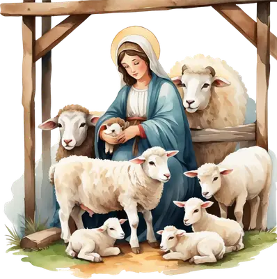 Blessed Mary & Lambs DTF Transfer | Christian Shepherd Scene