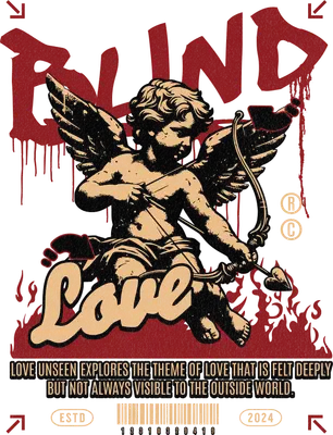 This striking DTF transfer features a classical cherub, reminiscent of Cupid, aiming its bow with an enigmatic gaze. Above, the bold, graffiti-style word "BLIND" drips in rich red, creating a powerful contrast with the elegant "Love" script beneath, all set against a backdrop of fiery red accents. This ready to press design combines ancient mythology with a raw, modern streetwear aesthetic, conveying a deep, unseen emotion. Perfect for individuals who appreciate art with a message, this design appeals to fans of alternative fashion, streetwear culture, and those who seek unique expression. It’s an ideal iron on transfer for crafting personalized gifts for a partner, adding an edgy touch to your own wardrobe, or creating inventory for Etsy sellers and small boutique owners catering to a younger, fashion-forward demographic. This heat transfer design speaks to the depth of love that isn't always apparent but profoundly felt. Applying this heat press transfer is effortless, making it suitable for a wide range of fabrics including cotton, polyester, cotton-poly blends, and even nylon. Achieve professional results with a heat press set at 300-325°F for 15 seconds with medium pressure, or use a household iron. No tedious weeding is required – simply peel and press! It’s perfect for custom t-shirts, hoodies, sweatshirts, denim jackets, tote bags, and even pillow covers. For lasting durability, wash garments inside out and tumble dry low. Our ready to press transfers boast vibrant, full-color printing that captures every fine detail of this intricate artwork. The result is a crack-resistant, soft-to-the-touch finish, free from the heavy, stiff feel of traditional vinyl. Each direct to film transfer is printed on premium DTF film with a strong, reliable adhesive backing, ensuring professional-quality custom apparel projects every time.