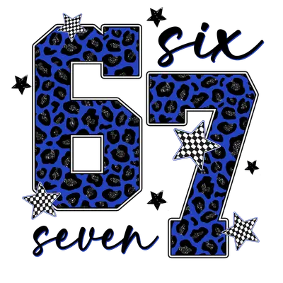 See allThis vibrant DTF transfer showcases the bold numbers "67" in a striking blue leopard print, accented with subtle glitter. Elegant script lettering spells "six" and "seven," while scattered black and checkered stars add a dynamic, sporty flair. This ready to press design merges a trendy aesthetic with racing inspiration, creating a standout graphic for any custom apparel or project. Perfect for celebrating a 67th birthday, anniversary, or a favorite jersey number, this unique iron on transfer is ideal for those who love bold fashion and competitive spirit. Small business owners creating custom apparel or DIY crafters personalizing gifts will find this eye-catching heat transfer design an excellent choice. Create memorable pieces for racing enthusiasts, sports fans, or anyone with a special connection to the number 67. Applying this heat press transfer is simple and effective, adhering beautifully to cotton, polyester, cotton-poly blends, and nylon. Achieve professional results with a heat press (300-325°F, 15 seconds, medium pressure) or a household iron. No weeding required—just peel and press! Perfect for custom t-shirts, hoodies, sweatshirts, tote bags, pillow covers, baby onesies, aprons, and denim jackets. For lasting durability, wash garments inside out and tumble dry low. Experience the superior quality of this ready to press transfer, showcasing vibrant, full-color printing with exceptional detail. The finished product is crack-resistant and soft to the touch, without the heavy, stiff feel of traditional vinyl. Each direct to film transfer is meticulously printed on premium DTF film with a strong adhesive backing, guaranteeing professional, long-lasting results every time.