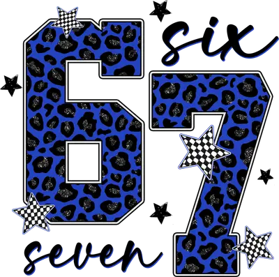 See allUnleash your wild side with this vibrant Blue Leopard Print 67 DTF transfer. Featuring large, stylized numbers '67' adorned with a striking blue leopard pattern and shimmering silver glitter accents, this design commands attention. White outlines give the numbers a crisp, clean edge, while scattered black and checkerboard stars add a dynamic, retro flair. Below, the elegant cursive text 'seven' complements the bold numerical design, with 'six' subtly placed above. This eye-catching DTF transfer is truly ready to press and transform any garment. This unique heat transfer design is perfect for anyone looking to celebrate a special year like 1967, commemorate a jersey number, or simply express a bold, fashion-forward style. It's an excellent choice for crafting personalized birthday or anniversary gifts, creating unique team spirit wear, or adding an edgy touch to your everyday apparel. Small apparel businesses and crafters will find this iron on transfer a fantastic addition to their inventory for creating custom pieces that stand out. Applying this heat press transfer is a breeze on a variety of fabrics including cotton, polyester, and blends – even nylon. Simply use a heat press set to 300-325°F for 15 seconds with medium pressure, or apply with a household iron. There's no tedious weeding required, just peel and press for instant results. Ideal for custom t-shirts, hoodies, sweatshirts, tote bags, and denim jackets, it allows for creative freedom. For long-lasting durability, wash your finished garment inside out and tumble dry on low heat. Experience professional quality with this ready to press transfer, showcasing vibrant, full-color printing with exceptional detail. The design is crack-resistant and soft to the touch, avoiding the heavy feel often associated with vinyl transfers. Each direct to film transfer is printed on premium DTF film with a robust adhesive backing, ensuring flawless application and outstanding results every single time. Elevate your apparel with this dazzling, durable design.