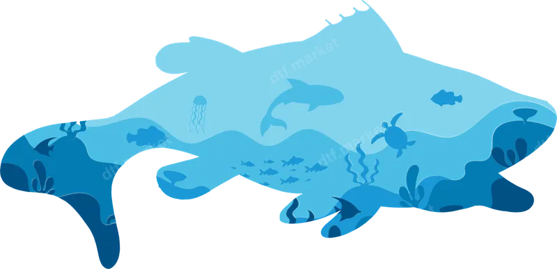 Blue Ocean Life Fish Silhouette DTF Transfer with Marine Animals