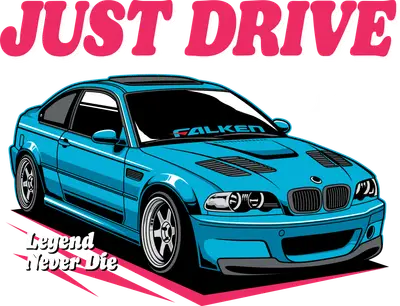 Blue Sports Car 'JUST DRIVE' Legend Never Die DTF Transfer