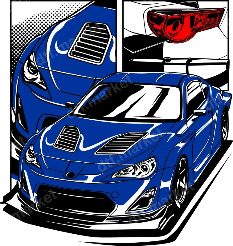 Blue Tuner Sports Car DTF Transfer | JDM Racing Apparel Design