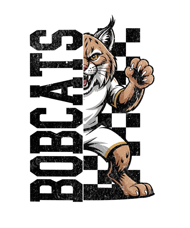 Bobcat Mascot Distressed DTF Transfer - Ready to Press Team Heat Transfer
