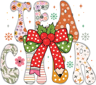 Boho Christmas Teacher DTF Transfer - Festive Ready to Press Design
