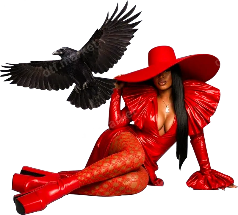 Bold Red Outfit & Raven DTF Transfer | Glamorous Pop Culture Design