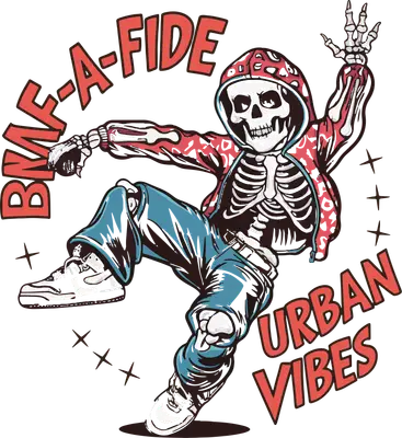 Bone-A-Fide Urban Vibes Skeleton DTF Transfer for Streetwear