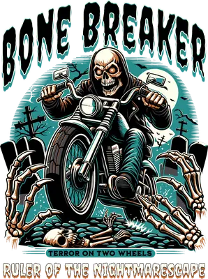Bone Breaker Skull Biker Motorcycle DTF Transfer | Terror On Two Wheels