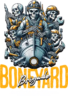 Boneyard Brigade Skeleton Crew DTF Transfer | Industrial Mechanic Skulls