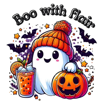 "Boo with Flair" Cute Ghost DTF Transfer | Halloween Pumpkin Drink Heat Press Design