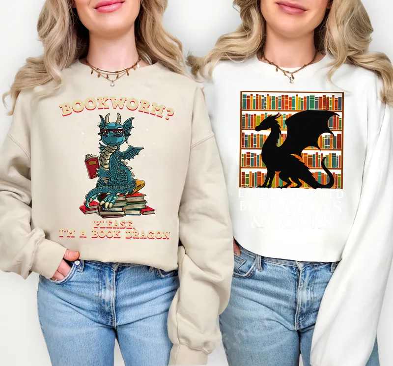 Book Dragon DTF Transfer - Funny Literary Fantasy Design