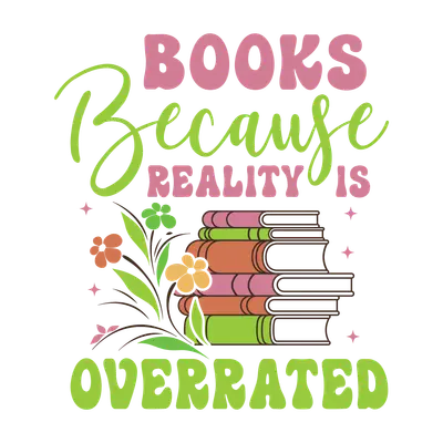 Books Reality Overrated DTF Transfer - Funny Reader Heat Press Design