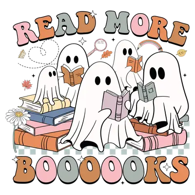 Booooooks Reading Ghost DTF Transfer | Cute Retro Bookworm Design