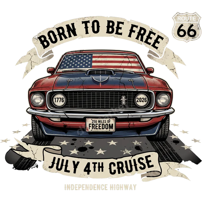 Born to Be Free July 4th Cruise Muscle Car DTF Transfer