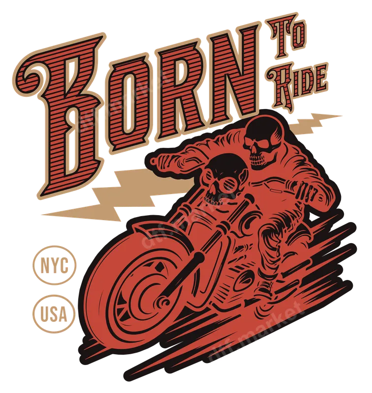 See allUnleash your inner rebel with our 'Born To Ride' DTF transfer, showcasing two skulls on a classic motorcycle with bold vintage lettering and 'NYC USA' details. This edgy heat press design embodies biker culture, rendered in a powerful red, black, and tan palette. It's a ready to press transfer that brings a rugged, rebellious vibe to any garment, perfect for those who live for the ride and the open road. This iconic iron on decal is perfect for motorcycle enthusiasts, biker club members, or anyone passionate about road freedom. It’s an ideal gift for Father's Day, birthdays, or a statement piece for rallies and touring events. For those who appreciate vintage Americana and a skull-centric aesthetic, this apparel transfer lets you proudly display your unyielding spirit on custom clothing. Applying this DTF transfer is simple and efficient. It adheres beautifully to cotton, polyester, and fabric blends. For best results, use a heat press at 300-325°F for 15 seconds with medium pressure and a cold peel. A household iron can also achieve great results. Enjoy the convenience of no weeding required, making garment customization quick and easy for your next project. Discover the superior quality of our direct to film transfer. Printed with vibrant, crack-resistant colors, this design withstands multiple washes without fading. The professional-grade DTF film offers a soft, flexible feel that integrates seamlessly into the fabric, ensuring comfort and durability. This premium t-shirt transfer provides excellent adhesion and a professional, long-lasting finish for truly standout custom apparel.